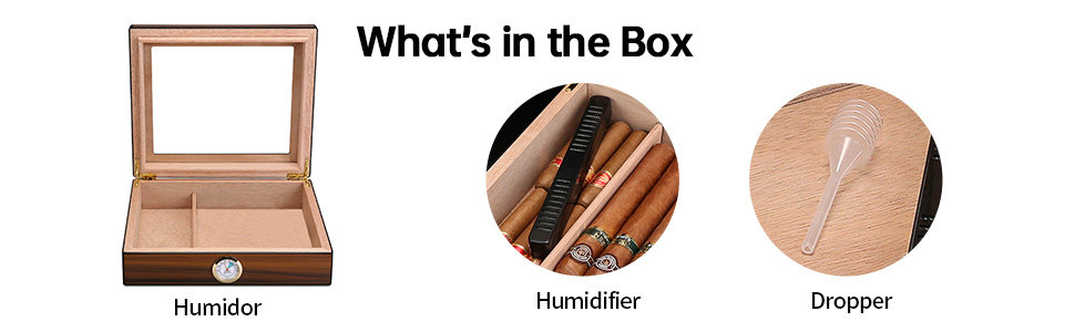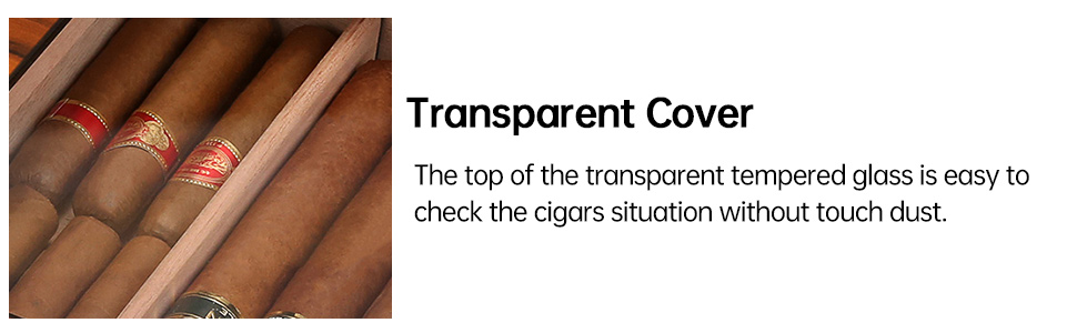 Perfect Configuration: The top of the transparent tempered glass is easy to check the cigars situation without touch dust. Use our electronic humidity thermometer to monitor the internal humidity and temperature, which is more accurate than the analog hygrometer,to keep your cigar fresh.After observation with an external hygrometer,you can add cigar humectant or distilled water to the built-in moisturizer as needed to create a moisturizing system to keep the cigars fresh.