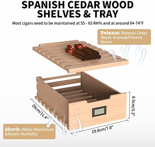 Semi-Heat Technology & Ultra Quiet: NEEDONE humidors apply semiconductor chips with Semi-Heat temperature control system, keeping the internal climate accurate and constant, the noise of humidor is lower than 38dB, extremely quiet, never trouble your life.