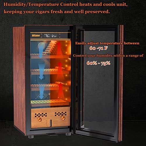 🚬 COMPRESSOR COOLING SYSTEM — 3-in-1 Electric Humidor, Heater & Humidor Maintains Precise Temperature & Humidity to Preserve, Enhance & Extend the Life of Your Favorite Cigar Products, Compressor Cooling System, Built-In Hygrometer, Digital Temp & RH Control Panel & Spacious Storage for Up to 800 Churchill-Sized Cigars. which contributes a constant temperature 60-71°F (16-22°C) and humidity (60-75%) environment to keep your cigars at the best status.